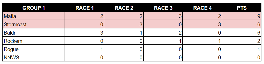 The only way it could've been more sensational is if Stormcast had simultaneously revealed himself to be Duke, Chedburn and the Zodiac killer as he passed the chequered flag. Rockem finished in third behind Mafia and Stormcast, and this meant that Stormcast progressed ahead of Baldr by virtue of races won.
