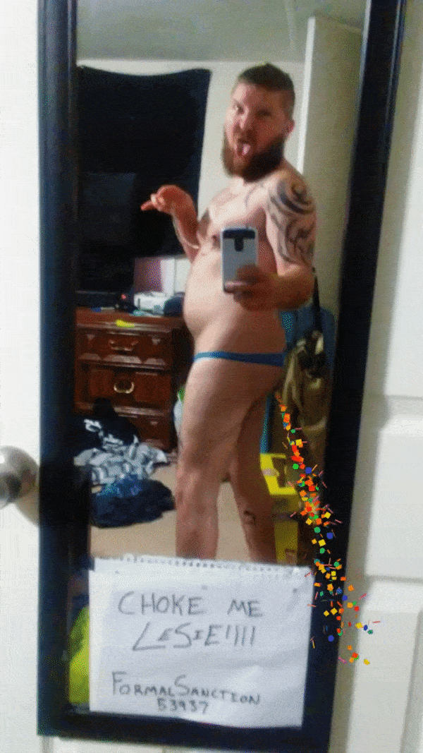 I have been reliably informed by our city's experts that the items seen being released from the front and rear of our entrant's entrances were added to the image using computer wizardry. Sadly, those ill-fitting undergarments are all too real, as is the sign, where FormalSanction somehow managed to misspell the word Leslie.