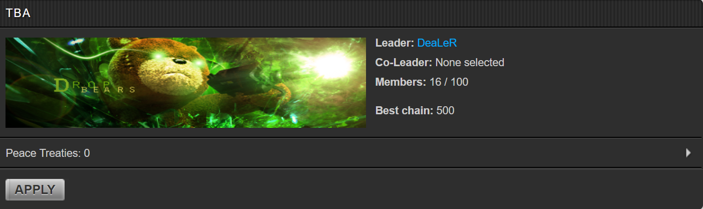 This means that within the space of a few weeks yet another famous Torn faction has changed hands, as Dropbears' sale took place not long after Tascon unloaded Memento Mori to Saitoma.