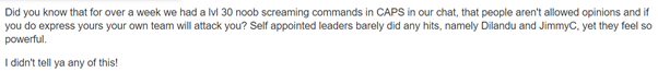 "Less of the leaders abandoned, more of everyone was too dam tired and already lost hope of us winning. Leaving a low level in charge couldn't make things any worse. Will provide more info once I finish my nap. It's 4 am where I live and I'm drained from being a leader."