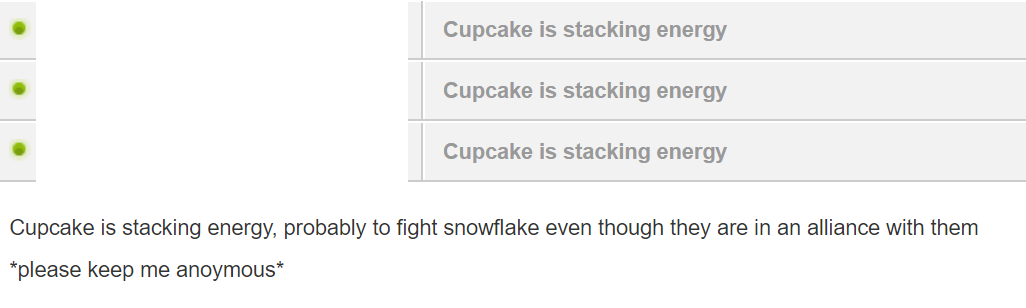 This seems to hint at a secret link between Cupcake and Snowflakes, or at least a non-aggression pact. One member of Team Cupcake told me their leaders confirmed this, despite several Snowflake attacks upon Cupcake members.