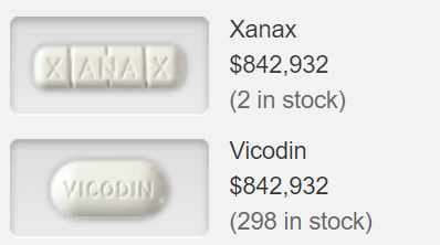 If Zachjuv were trading legitimately, he believes he'd be making around $1,000 profit per pill from this system. That may not sound like the greatest of margins on a product worth $842,932, but Zachjuv has another lucrative income stream which more than makes up for it. You'll notice the image above also shows how Zachjuv prices Vicodin at the exact same price as Xanax, despite its value being almost a hundred times lower - presently $9,312. This price is no mistake.