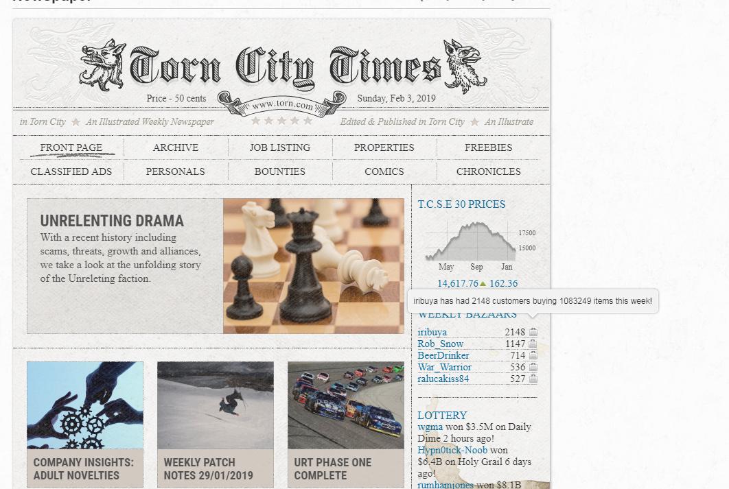 There are plenty of articles which tell you how to make money in Torn through reviving, doing odd jobs, selling losses and the rest. Most of these can be defined as 'a service that involves swapping Torn-Energy / real-life-time to Torn cash'. But how do you move to the next level? Today, on my 365th day in Torn, I would like to bring you the story of how I transformed from a simple city item buyer to become a regular fixture in the top 5 bazaar sellers through trading, wheeling and dealing.