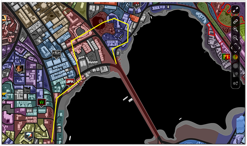 At midday today JFK and JFK 2.1 were engaged in a battle with FTW and Relentless over three territories to the north of the west bridge. The real action continued to happen north of the east bridge, though, with no fewer than nine territories contested in this region at the time. Relentless are currently dominating the area around City Hall, with 39th Street Killers occupying their northern flank in a move which seems to confirm rumours that they have indeed joined the Insurgency alliance - rumours that CR's Proxima has fully denied.