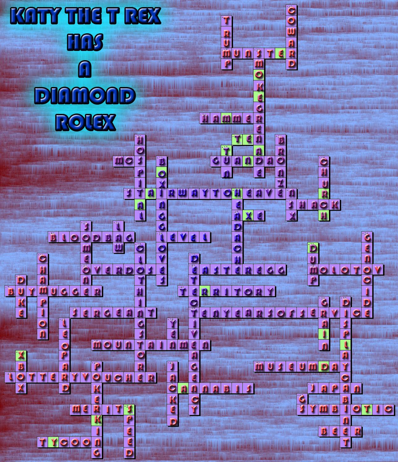 Last crossword's answer was "Katy the T-Rex has a diamond Rolex". What a fancy dinosaur. And the winners were... we had pile of winners, but the first person from this planet with the correct answer was Ish_Joker. This person will receive four Donator Packs. Three also-winners-but-not-quite-the-winner-winners were RawlsDeep, vertigo and Ouzsy. They will be rewarded with one Donator Pack each.