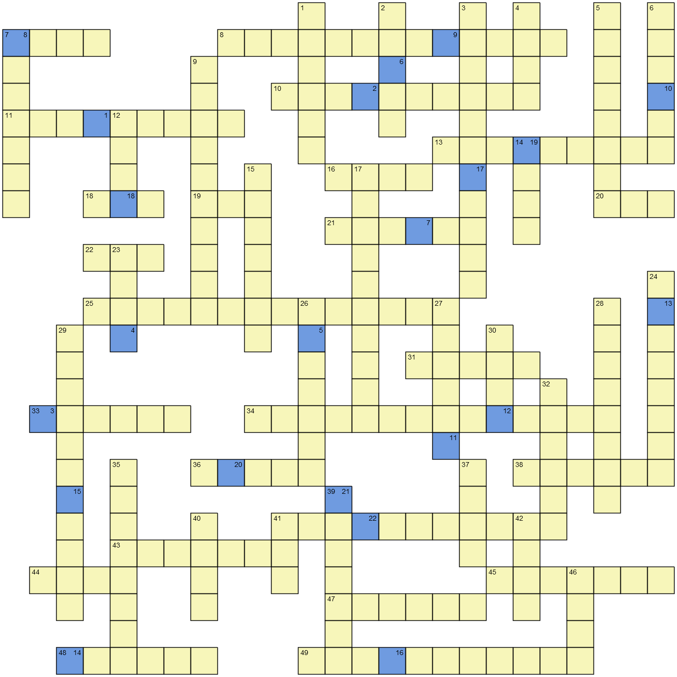 As ever, the answer lies in the blue boxes which are scrambled LIKE EGGS all over the crossword. Every blue box has a number in the upper right corner which represents that letter's position in the answer. The answer is 22 letters long. We wanted it to be 26, but oh well. Next time. What's that? You want clues? You can't handle the clues. Or maybe you can. Let's see!
