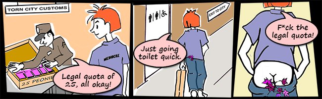 Following a thread by Panopticism on the inconsistency of the rules applied to comic submissions, the Torn City Times is making a few tweaks to the guidelines to make it clearer which comics we are willing to accept. These changes will soon be reflected in the rules displayed on the comic submission page. But in the meantime, let's explain what we're doing differently, what you need to do to get a comic published, and why we posted several s****y ones in the first place.