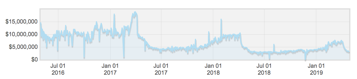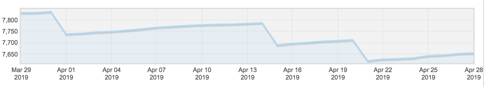 Feathery hotel coupons have seen a gradual decrease in price from $14.7mil in March down to about $14.5mil in April. I believe this to be a late aftereffect of the big war, since FHC prices have now dropped to just $100,000 above their pre-war valuation, and most likely will remain there, as they haven't fallen below $14mil since May of 2018.