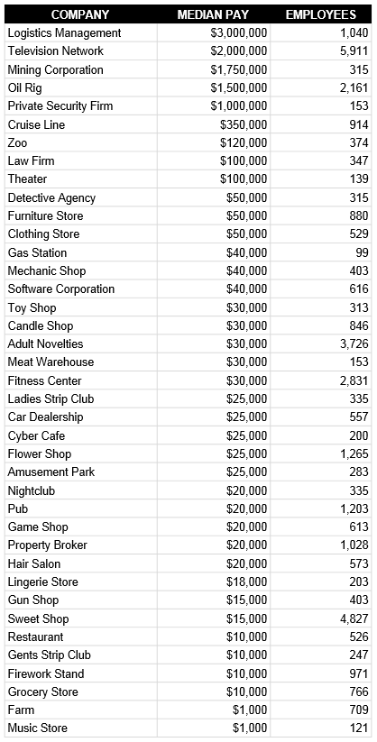 So those are the worst paying and least popular companies in Torn. We can expect some changes to be made to some of these firms over the next few months, so keep an eye on the newspaper for such announcements. And for those of you who would like to know the median pay and number of employees working in every industry, please see the spreadsheet below - note, this information was correct as of July 3rd, 2019.