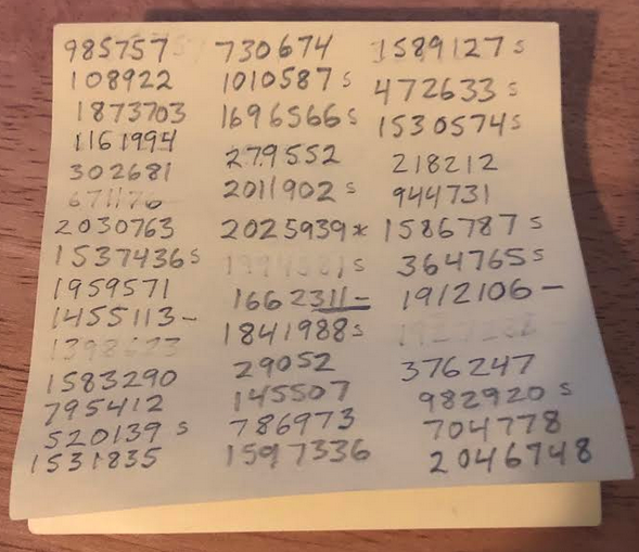 This method required carrying around cryptic scraps of paper like the one below so I would remember who to hit. If someone had found one of these notes on me, they probably would have thought I was a code-breaker - or more likely, an insane person.