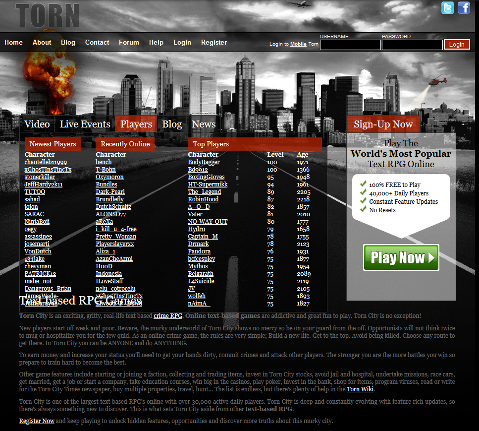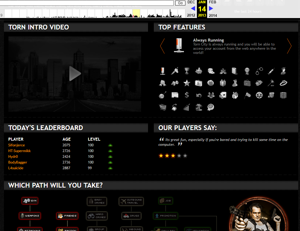 By the early days of 2013, we can see plenty of the homepage details that endure to this day. When looking at this, in comparison to the older snapshots we have seen here, we can appreciate how Torn evolved throughout the years on its way to becoming the Torn we know now.