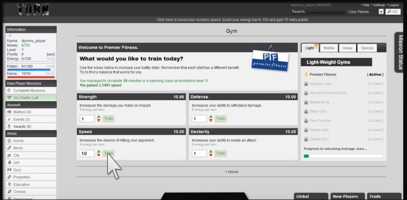 It was around this time that Torn’s gym page morphed into something closer to what we have now, complete with the different gyms to be unlocked and so on. This page was almost identical to our current gym system until the recent update.