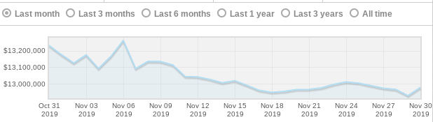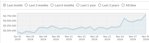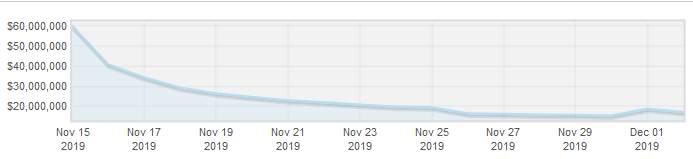 Gift Cards have increased in price by $1 million over the past month, rising from $2.9m on Nov 2nd to $3.9m today. This price value correlates with a consistent downturn in their circulation graph, which is something we haven't seen for a couple of years.