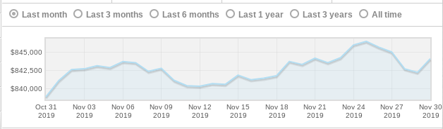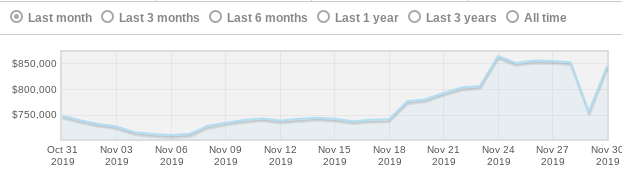 The Lawyer’s Business Card has had an interesting month, to say the least, as while they typically sell for around $500k, they rose to a high of $832k mid-November - their highest since April 2018. LBC's then dropped to a four-month low of $480k on November 29th, before rising back up to a healthy $580k.