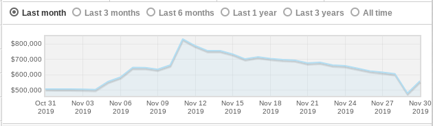 The value of Xanax has been fluctuating recently, with a $2k dip early in the month followed by a gradual $6k rise which only dropped off a few days ago. There was a more significant rise at the beginning of the month, though, where a solid $6k was added between the 29th of October and the 2nd of November.