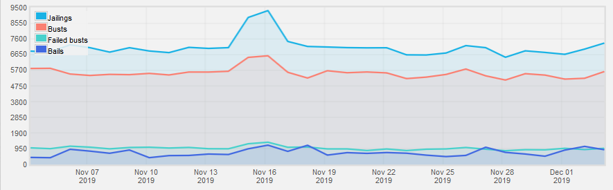 Pictured: Jailings graph for the previous month