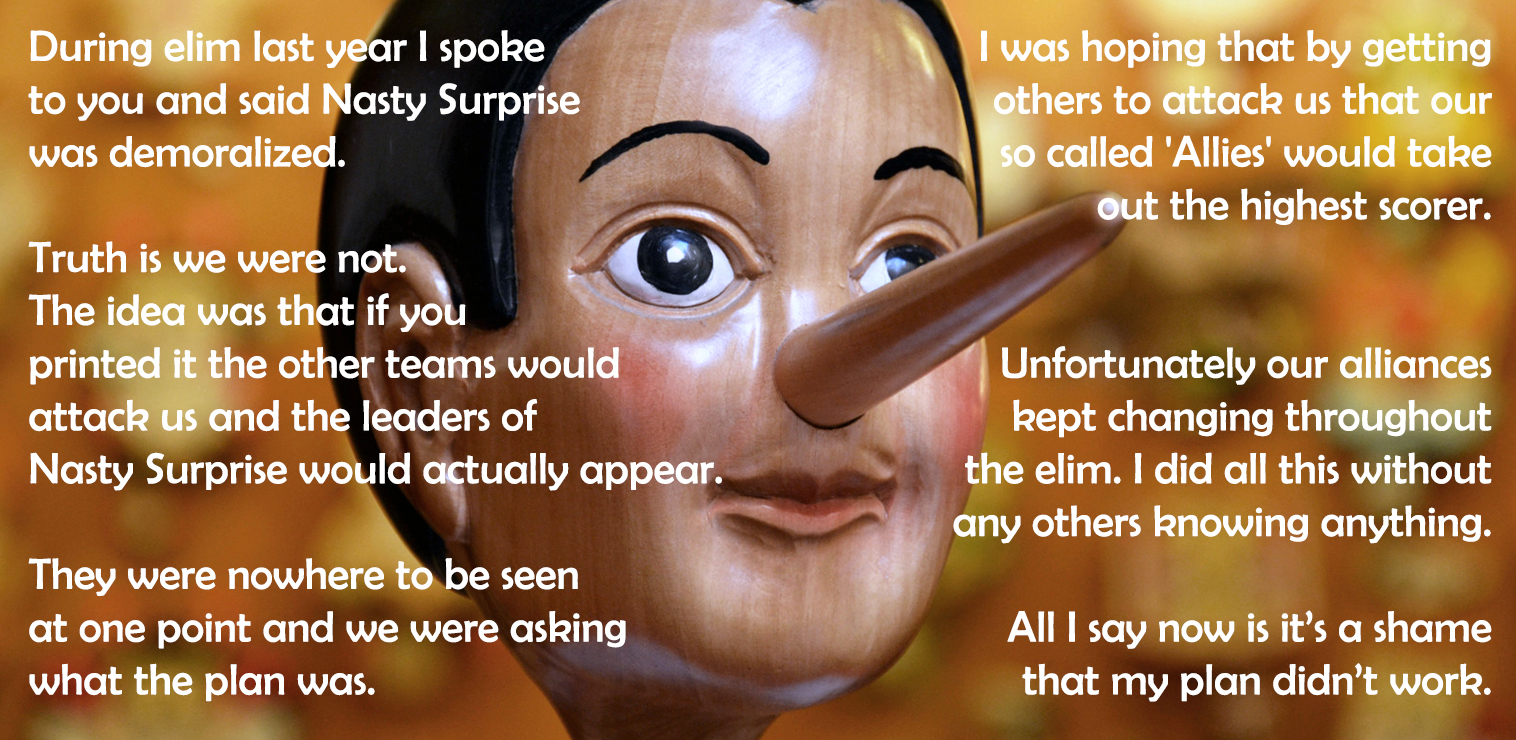 What are you compensating for, my anonymous stirrer of faecal matter? By engaging in these sordid little games with Torn's newcomers, it appears you are trying to assert your power and intellect over those who are weaker than you. This, it seems, giveth you satisfaction so great that you cannot help but repeat the process. Would it be so terrible if you were to do something nice, anonymously? I fear so. With that in mind, my edict is as follows: I want you to go out and pick a fight with a baby. I want you to pick a fight, and lose.