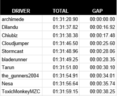The Winter Rally qualifying sessions concluded last Thursday after an action-packed six-day event which saw eighty-seven races run across six different tracks. The URT was indebted to its stewards for generously offering to help put on this event, which ended up becoming the largest qualifying round we've ever run. Thank you to everyone who pitched in to help steward our races, and to those who took part too.