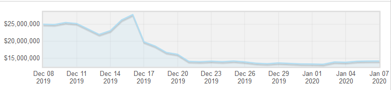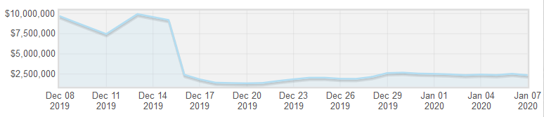 Damp Valley had a similar start to December, but while Goose Juice's descent was more gradual, Damp Valley plummetted dramatically, losing $100k in the space of a few days after CT opened. It has recovered around $25k of this at the time of writing.