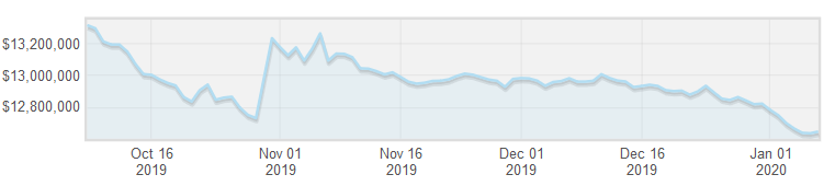 Business Class Tickets aren't classed as a booster, but we'll include them here anyway. Several thousand BCT's were given out by Christmas Town, and while their price was falling during the first two weeks of December, their increased circulation has merely exacerbated the situation. BCT's have fallen from $6.5m on the 16th of December to just over $5m on the 8th of January - the lowest they've been since June 2019.