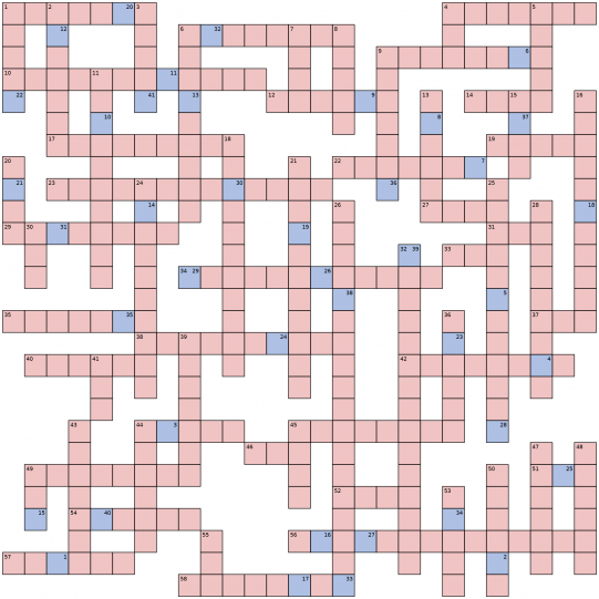 This month's entry is in pink, because we've just had Valentine's Day, and pink is the colour of love - for reasons we won't go into here. As usual, to solve the crossword you need to fill in all the answers so that each of the blue boxes contains a letter. When you've done that, you place those blue boxes in order according to the numbers in the top right hand corner.