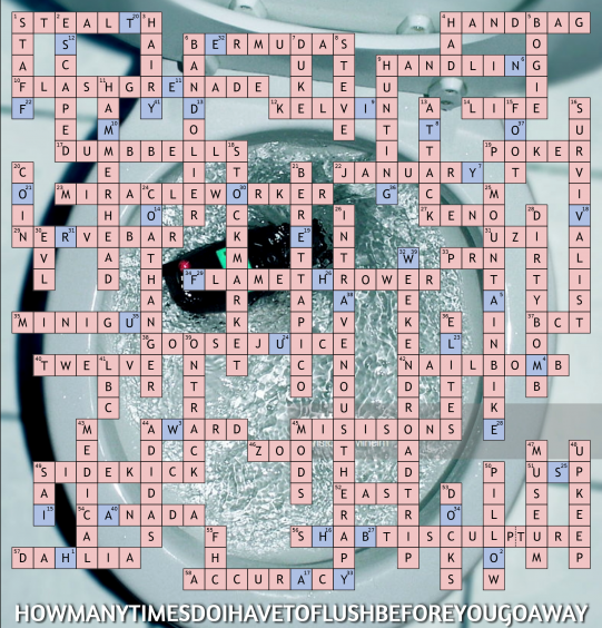 Anyhow, the answer to the previous crossword was: "How many times do I have to flush before you go away?" - usually two times is enough. The first person to flush the correct answer into my inbox was Assassin_007. Three randomly flushed players were: JorgiEAGLE, Solumna, Sparks42069. Congratulations! Prizes will be sent out shortly!