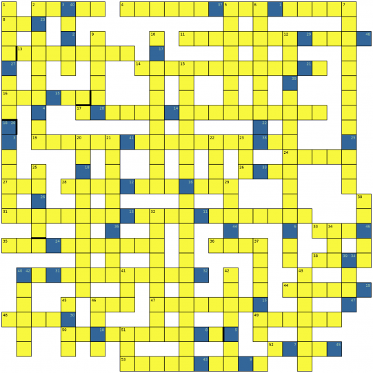 Here is our new crossword with its spectacular color combination of yellow and blue. As usual, you must solve the crossword by filling in the answers according to the clues given beneath, which are indicated by the number in the top left corner.