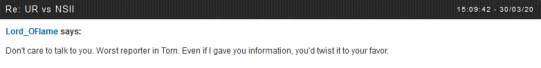 "...UR1 WOULD fight, this is if we were attacked directly OR could even reach the island to defend. But we simply were not attacked, nor had the ability to reach the island. I understand that NS II was not aware of this and expected us to come, but we couldn't! so there's that. Anyone who says other dumb s**t like we are running away or whatever is just deluded."