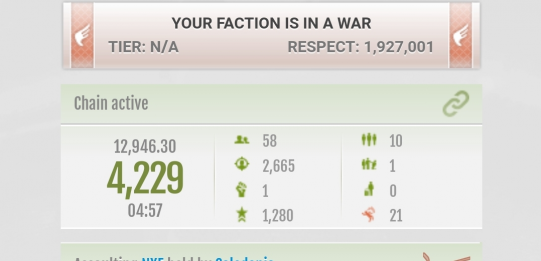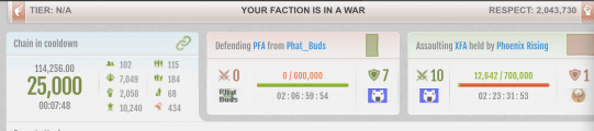 Mysteria wanted us to add that The Igloo's recent 25k chain was achieved while under heavy fire from five other factions. The image supplied below suggests they had over 2 million respect when it was completed, but this may have been inflated due to the number of wars they were fighting at the time.