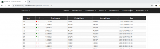 MonChoon of The Next Level also got in touch to say that they were the 13th highest respect earning faction in February. If true, this means they may have been even lower than we previously thought at the time of their 25k chain, depending on when during the month they achieved the bulk of their respect. Leader Andrew _616 provided the following evidence that his side was at least below 1.9 million when they completed their chain, noting that Torn Stats also tracked them as being around the 1.8 million mark.