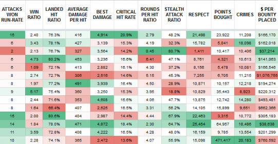 Ambitious players in Torn are ten a penny, but those who rise to the very top like the creamiest cream often have something else about them. For many great players, an obsession with data and statistics is key, and that certainly appears to be something one anonymous newcomer had in their locker, if their Google Spreadsheet is anything to go by.