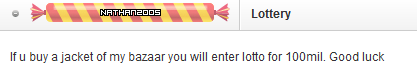 Nathan2005 got in touch with the Times to promote her Bazaar Lottery, where players can enter simply by buying a single item from her store.