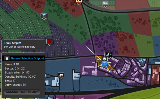 Late last month Nemesis of MMCP posted a thread which alerted the community to the existence of Natural Selection Outpost, a single-man faction run by Topsy, whose sole purpose appears to be the holding of a Level 4 Truck Stop. RSE is the territory in question, and you can find it on the northern part of the map in Sector 6 if you fancy a wander out towards hillbilly bumf**k land.