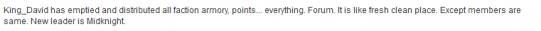 In a forum post speculating over Midknights future, Penicillin claimed that SA tried to buy OP last year, only to back off when they realised they were a stolen faction. It is alleged that The_Healer was the original owner of One Punch, only for Midknight and King_David to take it from him without compensation. A thread detailing these accusations can be found here.