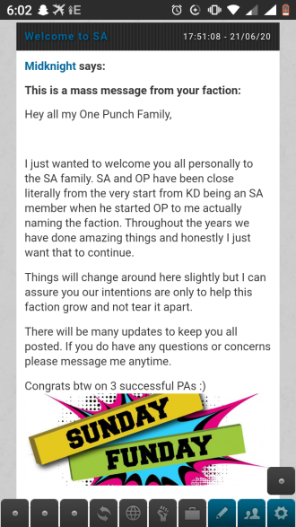 One Punch, the 39th ranked HoF faction in Torn, is to be rebranded as Subversive Alliance 2 according to a faction newsletter leaked to the Torn City Times. One Punch has always been close to SA and has been considered their sister faction for some time now. However, this move is by no means a simple formalising of their alliance, as with the rebrand comes the departure of OP's leader King_David. Miro and Midknight have occupied the hotseat over the past few days, with Mysteria set as the current leader for the time being.