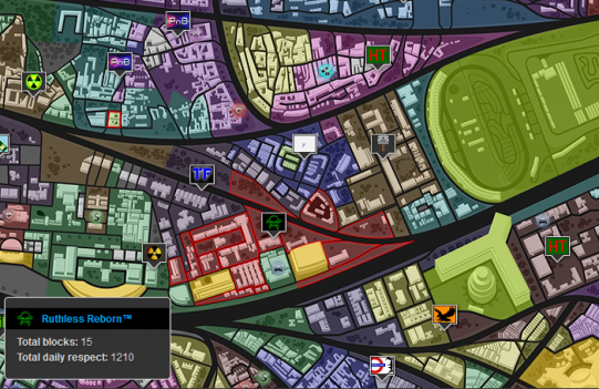 It will be interesting to see if HT comes into conflict with RR given how close they are on the territorial map. My source tells me that HTX only dropped one racket, which Yakuza then took in order to hold for HT main while they resorted their territories. D3vl claimed he was going to use his profits from HT-X to buy a new HT faction, but nobody is quite sure where this faction will fit in their local area - it may be that Ruthless Reborn may be impolitely asked to leave.