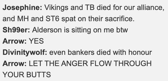 With ST6's Elimination looking likely as their allies dwindled to just three, the seals had no choice but to flip for a treat. MightyGoober agreed to bathe himself in Sea Men when he approached Stretch to switch sides, which he only did when he realised that the Murder Hornets had already flipped too. This meant that MH had to swiftly change their attack plans to avoid hitting their old allies, who were now their new allies, in a different alliance. Got it? Good.