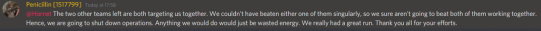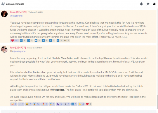 "Themainman? Who’s that? Oh the leader of the first team to backstab my team during my first elimination as leader? Of course he didn’t want to work with me. 12 hours after that happened, we organized a late night raid on the several thousand tickets they had. They plummeted to zero in minutes. It was great for team moral."
