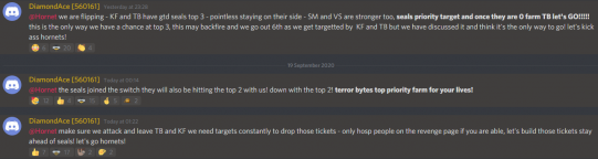 "Honestly, we (st6) went all out to help MH today while focusing on Total Bankers. We gave up farming tickets and was only hitting Wa**ers on lifeloss timers, to make sure they were always at 0. The problem was, Murder Hornets were not hitting at the right time and bled so many lives for no reason."
