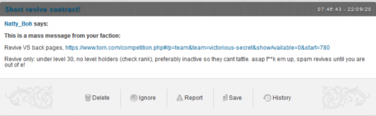 four also believes that Sea Men also had more revivers and funds at their disposal, and repeated his claim that their leadership ordered a friendly faction to revive the Victorious Secret back pages. Stretch disputes this, saying "our faction doesn't do revives, like we don't even have that unlocked, none of them do, so no truth at all to that one." - a statement which ignores NS's ability to pay or coerce friendly factions to do this for them.