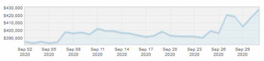 Speed arrested a month-long slide from $195k to $140k by finally picking up in late September, gaining $20k to land at a price of $161k.