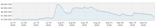 Xanax peaked at $836k on the 10th of September but immediately started to fall as soon as the warm-up period ended. Xans now sit at $826k, which is their lowest average market price for four years. Unique blames WTD for this fall after 100,000 extra Xans entered circulation during the event.