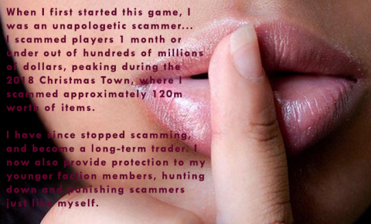 The first lesson you must learn is that if you wish to remain anonymous during your confession, it is unwise to include your username in the quote itself. The name of this confessor hints that they are a female with a particular interest, and while they may claim they have done this for monetary gain, I am not so certain that this is the truth.