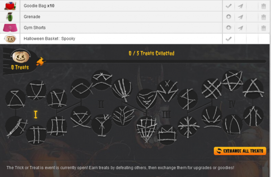 Aside from the extortionate thirty-five dollar basket cost, there are no downsides whatsoever to participation in the Trick or Treat event. While holding a basket, each attack you make between the 27th of October and the 3rd of November has a chance of gaining you a treat. If you were planning to spend the next seven days murdering strangers for no apparent reason, you may as well do so with a little plastic bucket in your hand.