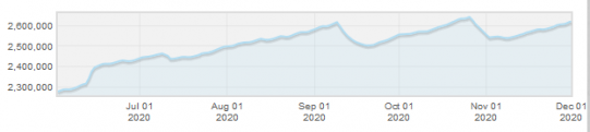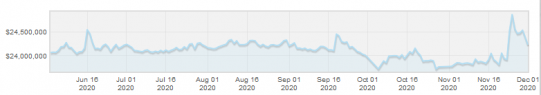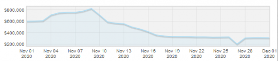 Neumune has had a few peaks over the year, but for the most part, this anti-radiation drug has been falling gradually over 2020. That trend looks like it might be reversing, as since a low of $2 million was noted on the 13th of November, Neumunes have added nearly $300k to their value. Is nuclear war coming to Torn City?