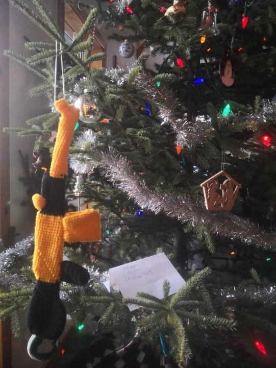 Our winner Otter hand-knitted a Gold AK last year, so you'll need to put in a mighty effort if you are to beat that. Your ornament should be Torn-themed, but it doesn't have to have any connection with Christmas whatsoever if you don't want - if it's hung from a tree it's an ornament in my book. You might make a hand-grenade out of papier-mâché, a depiction of Leslie from air-dried clay, or you could build a hot-stinking wreath from old turkey bones. You might not want to, but you could.