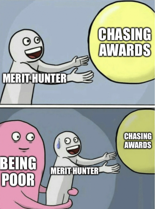 Knowing which awards you want is a good long term strategy for staying productive. Knowing which awards you are close to is a great short term strategy for giving yourself the warm glow of achievement. The first thing I always say to people is this: Which awards or merits are you close to?