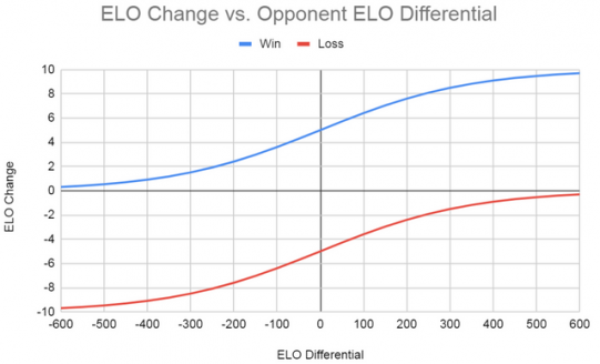 Pictured: Due to rounding, any opponent more than 511 below your ELO rating will result in no gain.