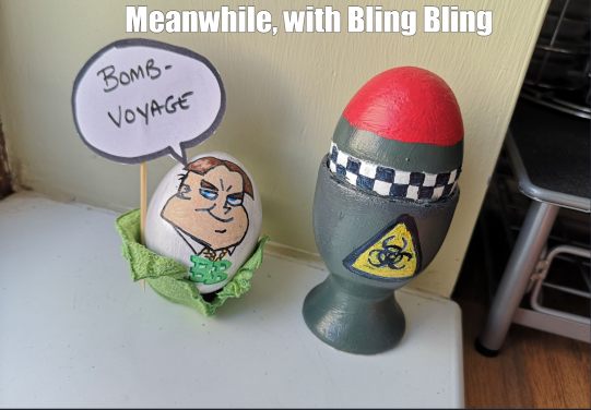 This event seems to have attracted a different style of entries this year, most likely due to a change in the wording on our part. Whereas players usually spend a great deal of time creating elaborately painted eggs, we instead received a number of story pieces that ran over several images. Some of these were very entertaining, but in a competition with art at its heart, we're always going to prioritise a nicely decorated chicken secretion over anything else.