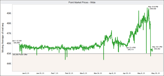 The graphic above shows that prices actually fell to $44,759 at 3pm on the 17th, which is $241 below the pawn shop price. Our economist went on to explain why this happened: